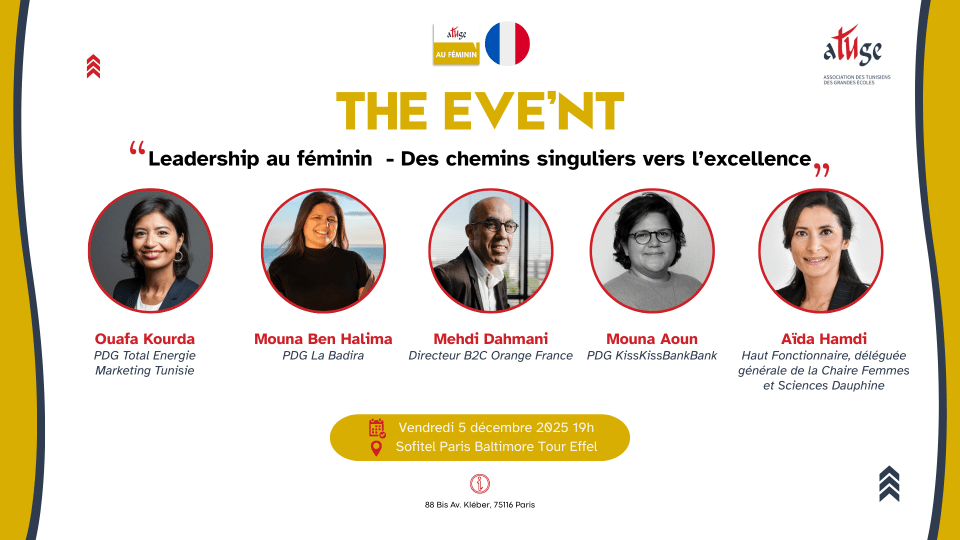 - Inscription via :https://www.helloasso.com/associations/atuge-association-des-tunisiens-des-grandes-ecoles/evenements/the-eve-nt-2025-leadership-au-feminin